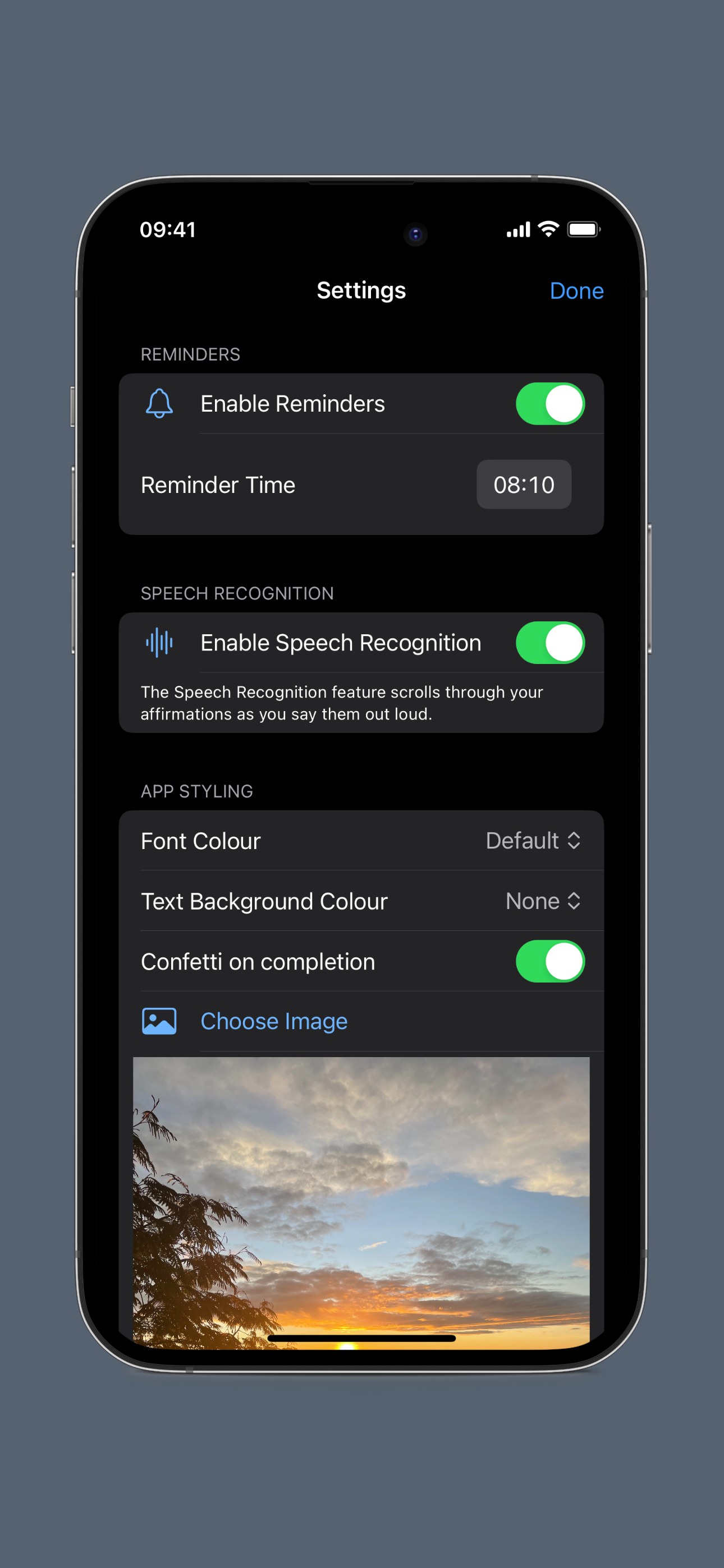 The intention for this app is to help people with their affirmations, providing unique ways to reprogram their mind.